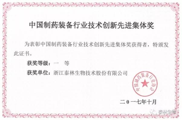 本次評選活動共評出技術創(chuàng)新先進集體18個,技術創(chuàng)新先進個人26名,科技進步獎3個。泰林生物作為微生物檢測與控制領域的專業(yè)公司,研發(fā)制造創(chuàng)新水平得到了行業(yè)協(xié)會領導與專家的充分肯定,榮獲中國制藥裝備行業(yè)技術創(chuàng)新先進集體一等獎!